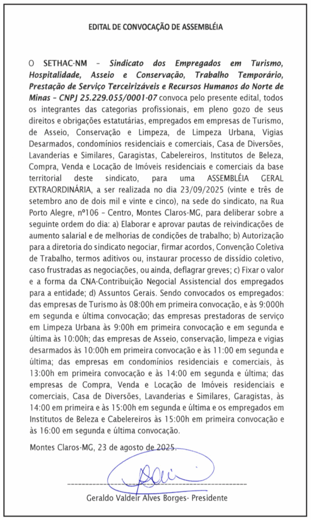 Previous Related Posts Sem categoria CONVOCAÇÃO ASSEMBLÉIA GERAL SETHAC Sem categoria Edital de convocação